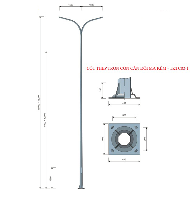 - Cột thép tròn côn cần đôi mạ kẽm 9m tại Đà Nẵng